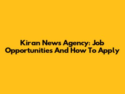 Kiran News Agency: Job Opportunities And How To Apply