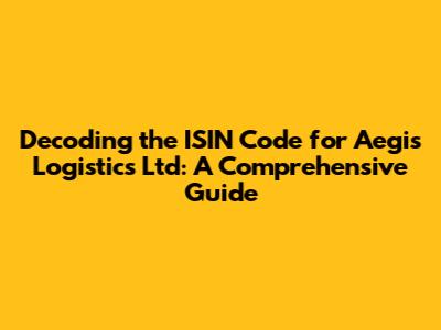Hey there, finance enthusiasts! Ever wondered about the ISIN code of Aegis Logistics Ltd? Well, you're in the right place! We're diving deep into the world of international securities identification numbers (ISINs) and specifically, how they relate to this prominent logistics company. So, grab your favorite beverage, get comfy, and let's unravel this mystery together. This article aims to provide a comprehensive guide to understanding the ISIN code for Aegis Logistics Ltd, its significance, and how it helps investors navigate the stock market. We'll explore the basics of ISIN codes, their structure, and how they uniquely identify financial securities across the globe. Additionally, we will delve into the specific ISIN code of Aegis Logistics Ltd, explaining where to find it and why it's crucial for trading and investment activities. We'll also touch upon the importance of ISINs in preventing fraud and ensuring transparency within the financial markets. This guide is designed to be accessible to both seasoned investors and those new to the world of finance, providing clear explanations and practical examples. Let's get started and demystify the ISIN code for Aegis Logistics Ltd!