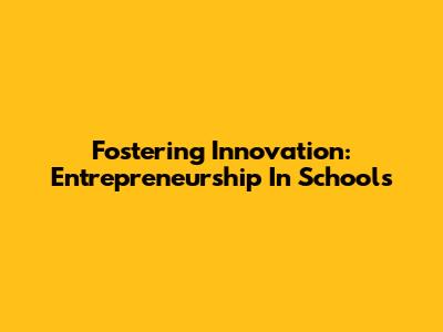 Fostering Innovation: Entrepreneurship In Schools
