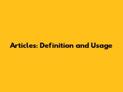 Articles: Definition And Usage