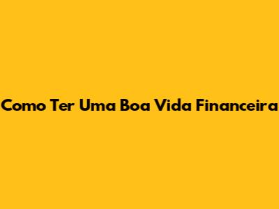 Como Ter Uma Boa Vida Financeira