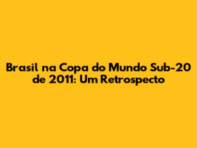 A Trajetória da Seleção Brasileira na Copa do Mundo Sub-20 de 2011