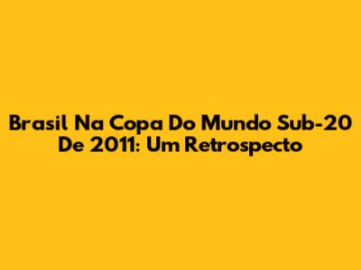 Brasil Na Copa Do Mundo Sub-20 De 2011: Um Retrospecto
