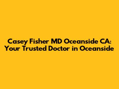 Hey guys! Looking for a reliable and experienced doctor in Oceanside, CA? Let's dive into why Casey Fisher MD might just be the perfect fit for you and your family. Finding the right healthcare provider is super important. It’s about more than just treating illnesses; it’s about building a lasting relationship with someone who understands your health needs and genuinely cares about your well-being. When you're searching for a doctor, especially a primary care physician, you want someone who is not only knowledgeable but also approachable and compassionate.