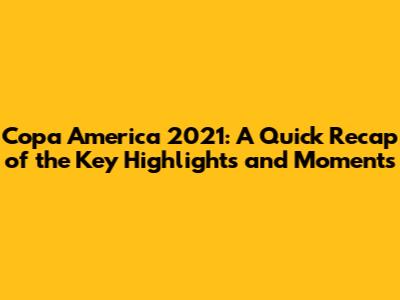 Copa America 2021: Quick Highlights & Key Moments