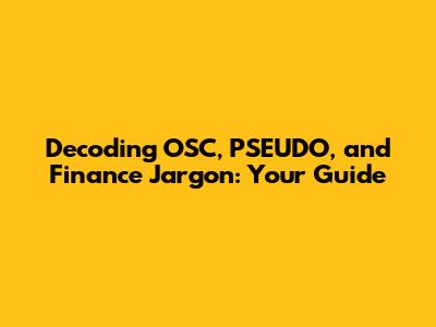 Decoding OSC, PSEUDO, And Finance Jargon: Your Guide