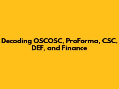 Decoding OSCOSC, ProForma, CSC, DEF, And Finance