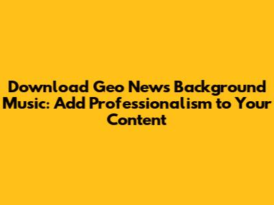 Hey guys! Ever been watching your favorite news channel and thought, "Man, that background music is on point?" Yeah, me too! Especially when it comes to channels like Geo News. Their background music often sets the perfect tone, whether it's for serious investigative pieces, breaking news alerts, or even those feel-good human interest stories. But what if you want to use that exact vibe for your own projects? Maybe you're creating a YouTube video, a podcast, or even a school presentation, and you need that professional, polished sound. Well, you're in luck! Today, we're diving deep into the world of downloading Geo News background music. We'll explore how you can get your hands on these catchy tunes, understand the legalities involved, and find the best sources to make your content sound absolutely stellar. So buckle up, and let's get this musical journey started!