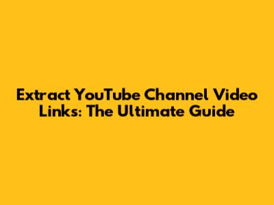 Extract YouTube Channel Video Links: The Ultimate Guide