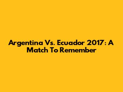 Argentina Vs. Ecuador 2017: A Match To Remember