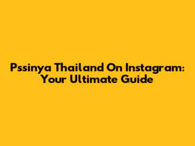 Pssinya Thailand On Instagram: Your Ultimate Guide