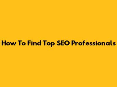 How To Find Top SEO Professionals
