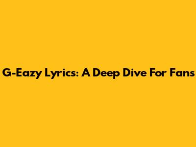 G-Eazy Lyrics: A Deep Dive For Fans