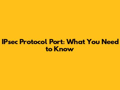 IPsec Protocol Port: What You Need To Know