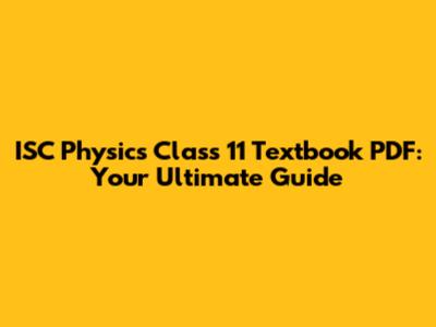 ISC Physics Class 11: Your Complete Textbook PDF Guide