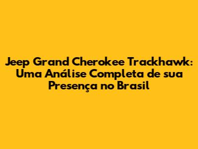 Fala, galera! Se você é apaixonado por carros potentes e cheios de atitude, com certeza já ouviu falar da Jeep Grand Cherokee Trackhawk. Essa máquina, com seu motor V8 supercharged de 6.2 litros, capaz de gerar mais de 700 cavalos de potência, é um verdadeiro monstro sobre rodas. Mas a grande pergunta que muitos entusiastas se fazem é: a Trackhawk chegou ao Brasil? Neste artigo, vamos mergulhar fundo na história da Trackhawk, sua trajetória no mercado brasileiro, seus pontos fortes, e tudo o que você precisa saber sobre essa fera da Jeep. Prepare-se para acelerar com a gente nessa jornada!