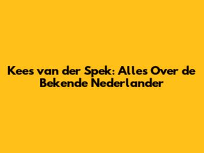 Kees Van Der Spek: Alles Over De Bekende Nederlander
