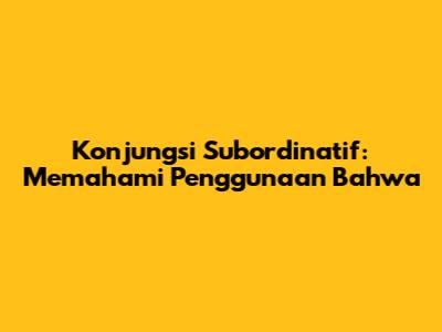 Konjungsi subordinatif adalah kata hubung yang menghubungkan klausa utama (induk kalimat) dengan klausa subordinat (anak kalimat). Klausa subordinat tidak dapat berdiri sendiri sebagai kalimat yang lengkap karena bergantung pada klausa utama untuk memberikan makna yang utuh. Dengan kata lain, konjungsi ini membantu membangun kalimat kompleks yang lebih kaya dan informatif. Konjungsi subordinatif 'bahwa' memiliki peran khusus dalam menyatakan penjelasan, isi pikiran, atau laporan.