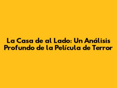 ¡Hola a todos los amantes del terror! Hoy vamos a sumergirnos en el escalofriante mundo de "La Casa de al Lado", una película que, sin duda, ha dejado huella en el género. Analizaremos a fondo cada aspecto de esta aterradora experiencia cinematográfica, desde su intrigante trama hasta sus impactantes efectos especiales, pasando por la magnífica actuación de sus protagonistas. Prepárense para un viaje lleno de suspense, sustos y giros inesperados. ¡Vamos allá!