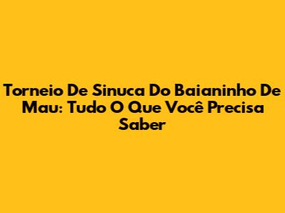 Torneio De Sinuca Do Baianinho De Mau: Tudo O Que Você Precisa Saber