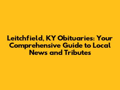 Hey folks! If you're searching for Leitchfield, KY obituaries, you've landed in the right spot. Dealing with the loss of a loved one is never easy, and finding the right information can be a real headache. That's why we've put together this comprehensive guide to help you navigate the local news and tributes in Leitchfield, Kentucky. We know how important it is to find accurate, up-to-date information, and we're here to make that process a little smoother for you. Let's dive in and explore how to find the obituaries you need, understand the local news landscape, and pay your respects to those who have passed. This article is your go-to resource for all things related to obituaries in Leitchfield, offering valuable insights, practical tips, and resources to help you through this difficult time. Remember, you're not alone, and we're here to support you.