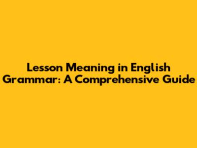Lesson Meaning: A Simple Guide To English Grammar