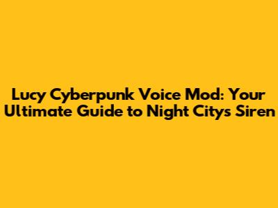 Hey everyone! Are you ready to dive headfirst into the neon-soaked world of Cyberpunk 2077 and experience it like never before? If you're anything like me, you're always on the lookout for ways to spice up your gameplay and immerse yourself even further in the gritty, thrilling atmosphere of Night City. Well, buckle up, because today we're talking about something seriously cool: the Lucy Cyberpunk voice mod! This isn't just any mod, folks; it's a game-changer. Imagine cruising through the streets, taking on gigs, and hearing the familiar, captivating voice of Lucy, the beloved character from the Cyberpunk: Edgerunners anime, guiding your every move. Sounds awesome, right? In this guide, we'll break down everything you need to know about getting the Lucy voice mod up and running, ensuring you get the best experience possible. Get ready to transform your Cyberpunk 2077 adventure and make it even more unforgettable!
