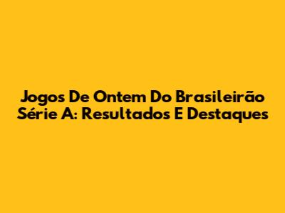 Jogos De Ontem Do Brasileirão Série A: Resultados E Destaques