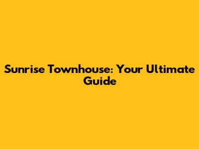 Sunrise Townhouse: Your Ultimate Guide