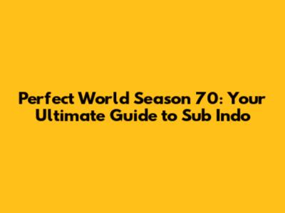 Hey guys! Are you hyped for Perfect World Season 70? If you're anything like me, you're probably scrambling to find where to watch it with Indonesian subtitles (Sub Indo). Finding your favorite shows with the right subtitles can be a real quest, so let's break down everything you need to know about Perfect World Season 70 Sub Indo. This guide is your one-stop shop for all the details, from where to watch, what to expect, and a little extra spice to keep things interesting. Let's dive in!