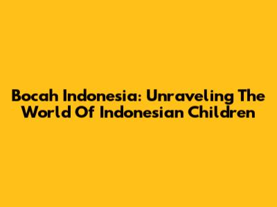 Bocah Indonesia: Unraveling The World Of Indonesian Children