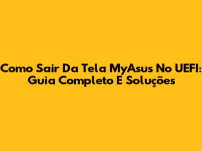 Como Sair Da Tela MyAsus No UEFI: Guia Completo E Soluções