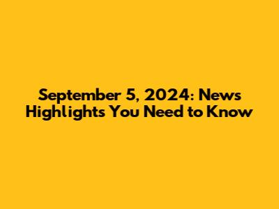 September 5, 2024: News Highlights You Need To Know
