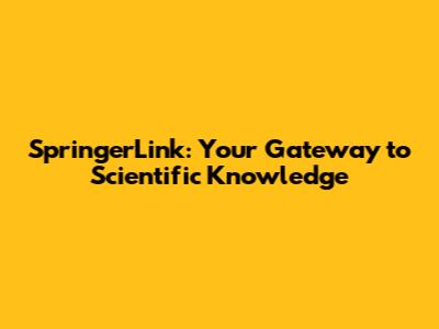 SpringerLink: Your Gateway To Scientific Knowledge