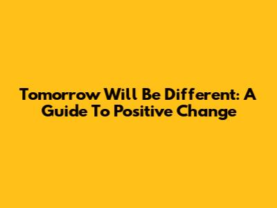 Tomorrow Will Be Different: A Guide To Positive Change